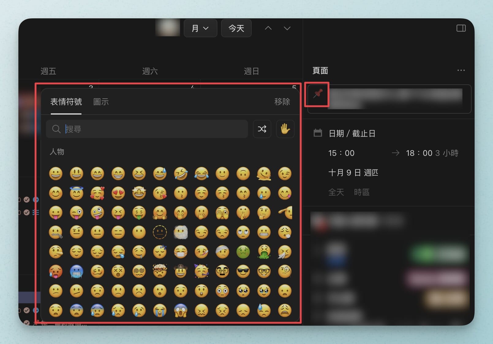 Notion calendar 可以直接調整圖示- 開啟 Notion calendar,點擊關聯至 Notion 資料庫的頁面,點擊頁面標題的圖示就能調整 icon 囉!