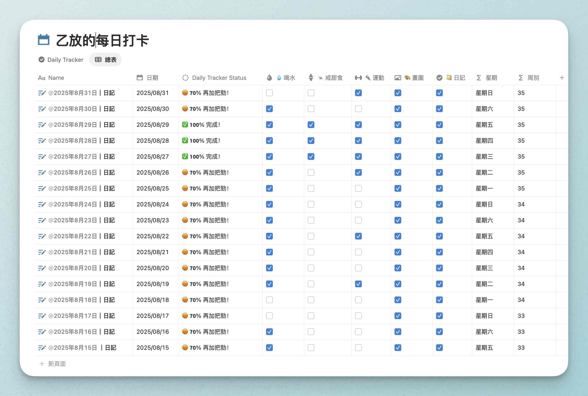 接下來就來分享乙放的每日習慣打卡系統,帶你了解設計流程及公式設定,建立個人化的打卡系統! 💪