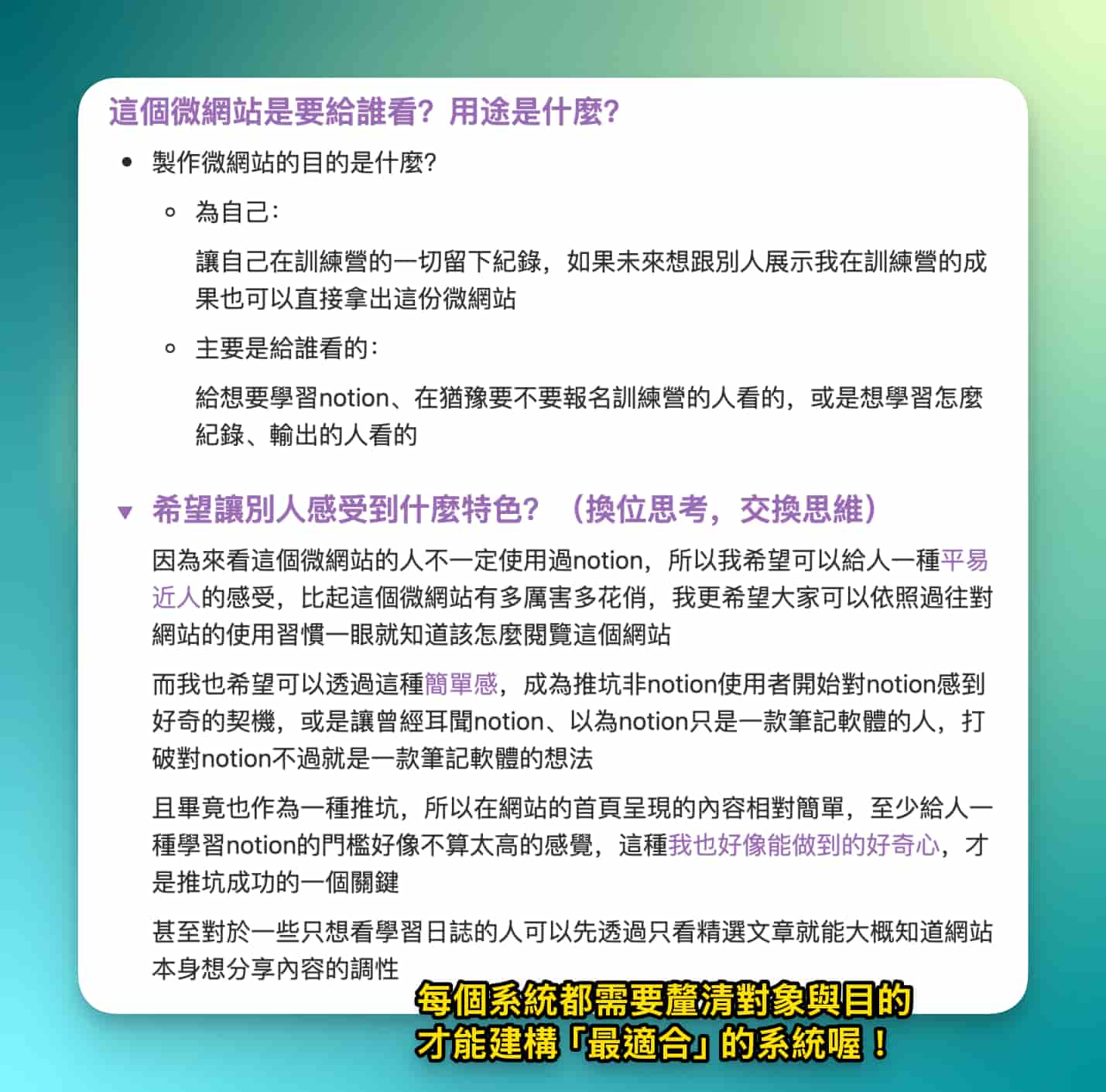 - 因為來看這個微網站的人不一定使用過 Notion,所以我希望可以給人一種平易近人的感受。