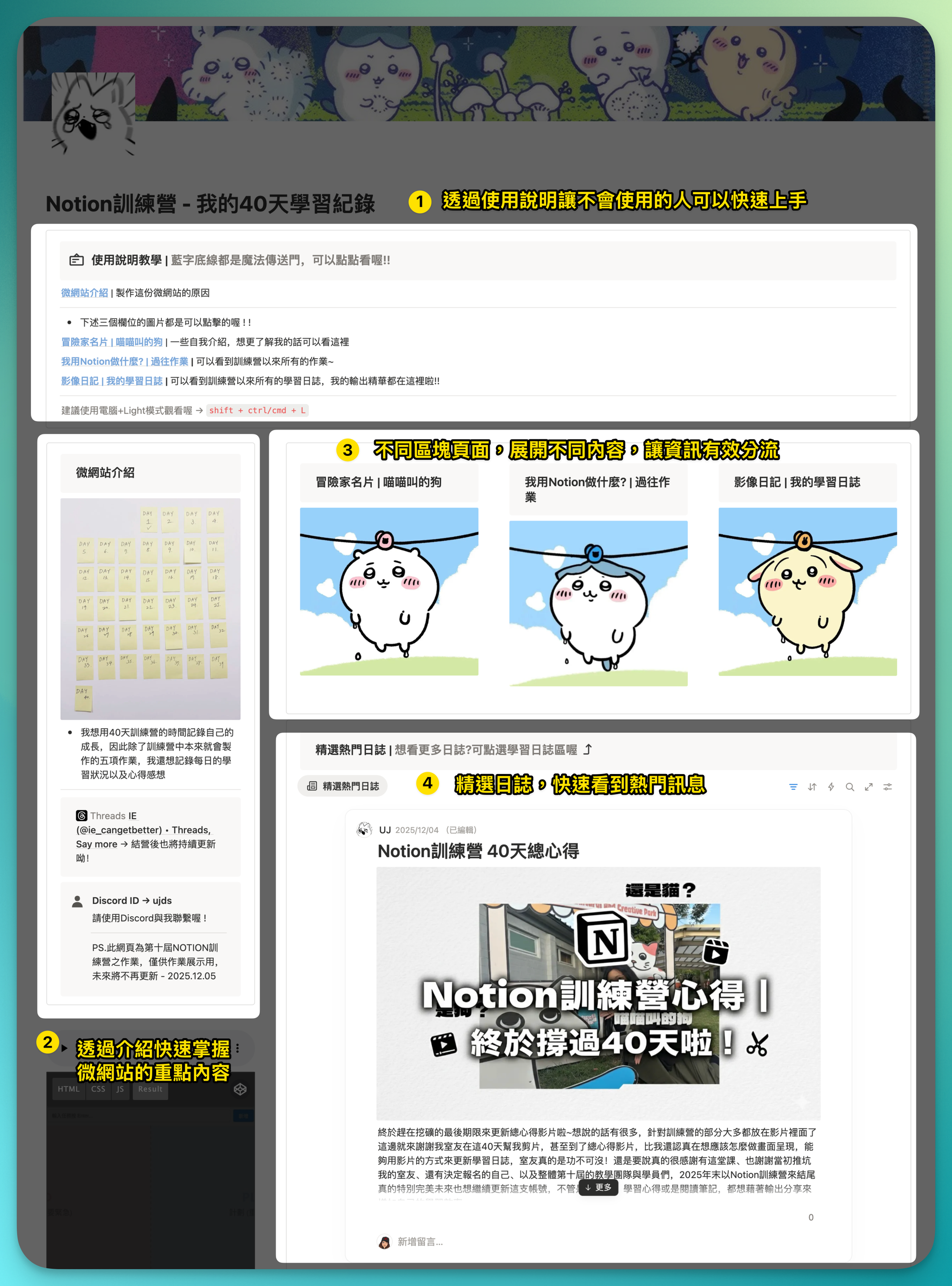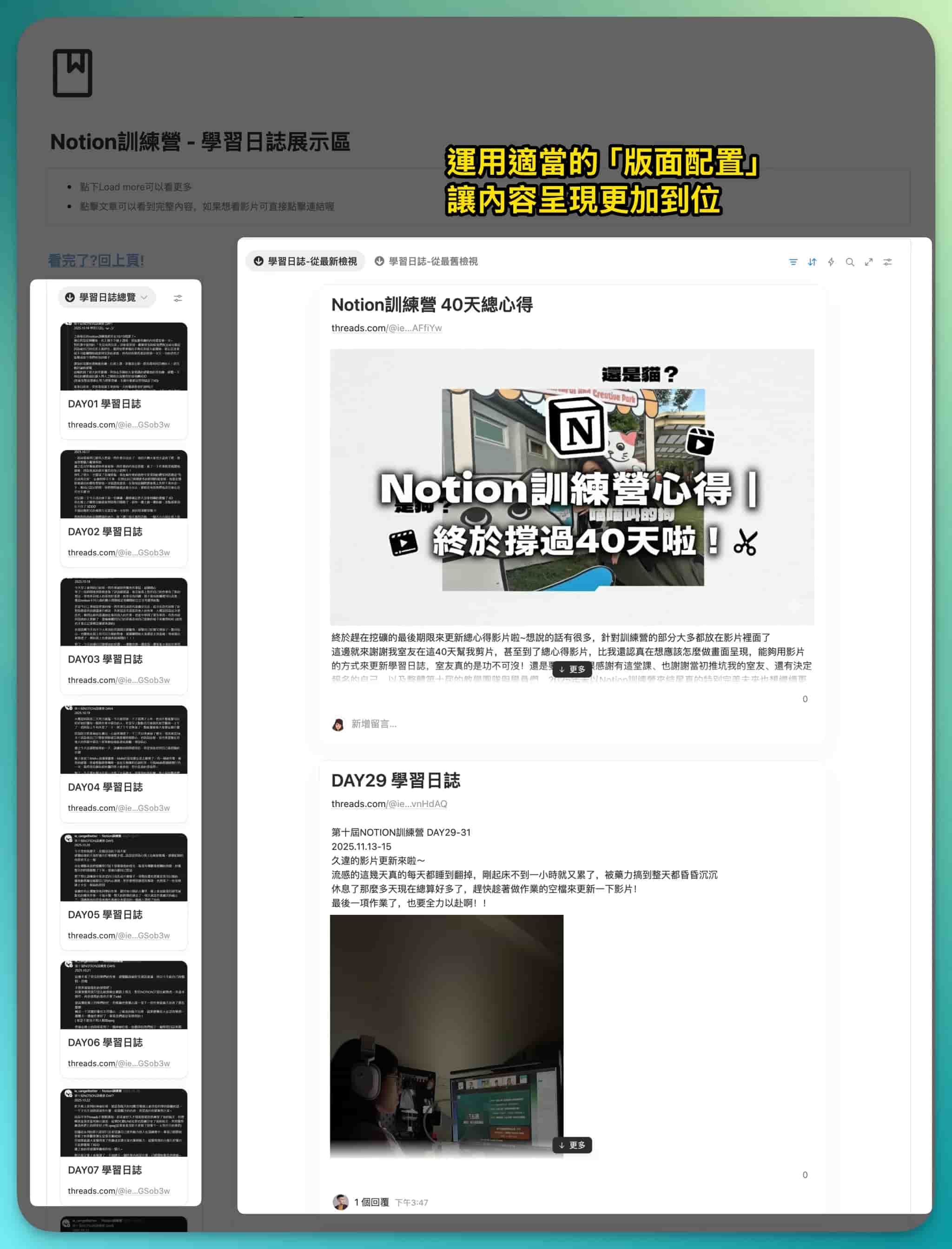 最後來統整這份「Notion 訓練營 - 我的 40天學習紀錄」值得學習之處-