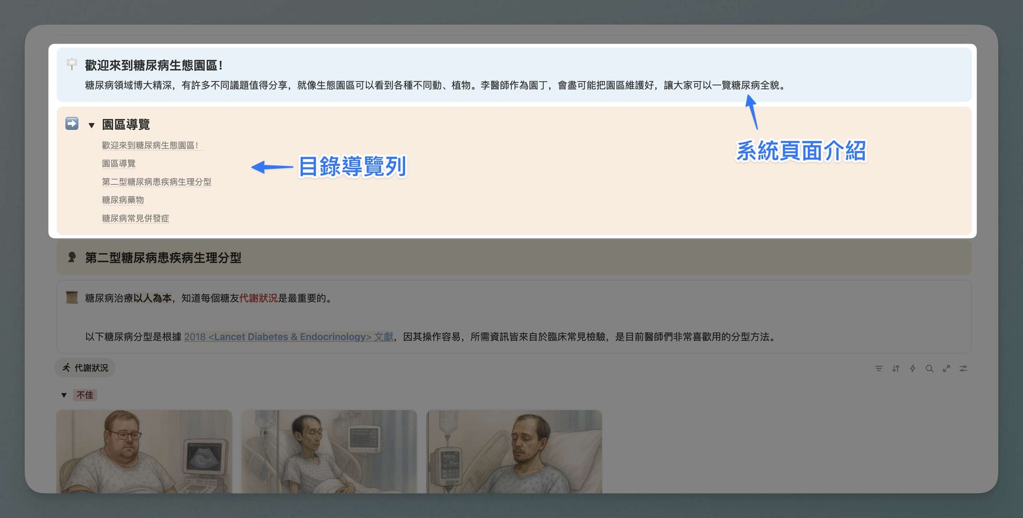 neurolee 的「糖尿病生態園區」衛教系統值得學習點1️⃣:系統頁面介紹與目錄導覽