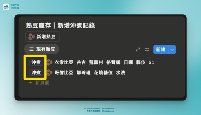 熟豆庫存 | 新增沖煮記錄區塊運用了PAI系統的 自我關聯- 當我點選