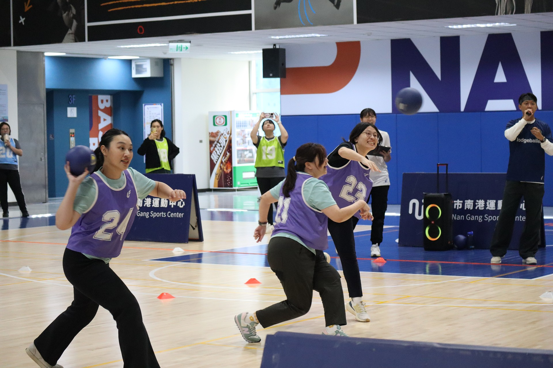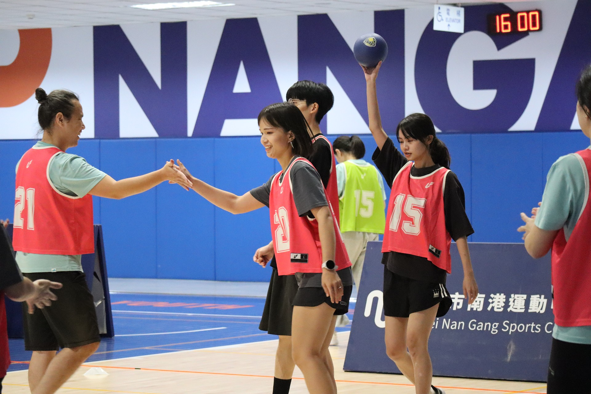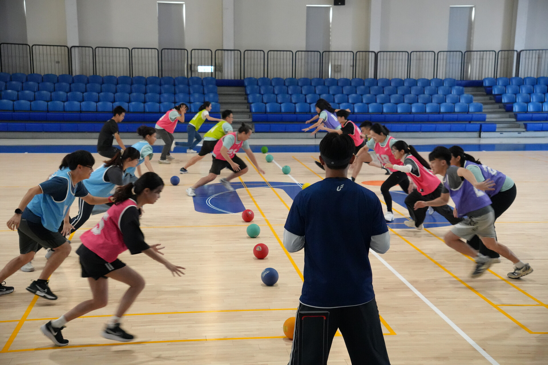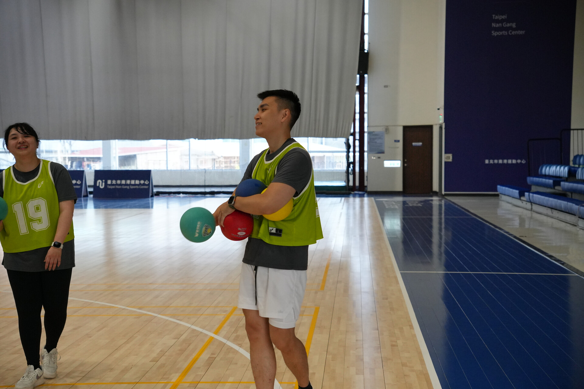 教練先帶我們認識美式躲避球的起源與規則,以及一些常見的戰略打法,讓我們實際上場分組對抗,親身體驗美躲的樂趣。