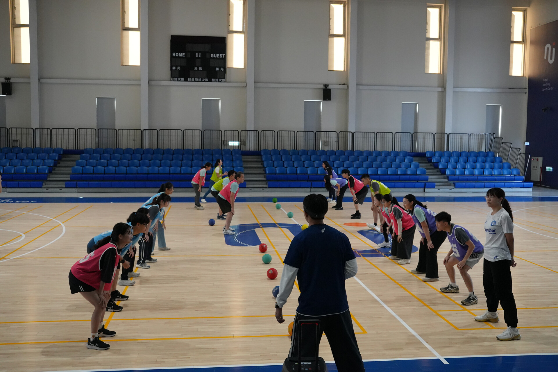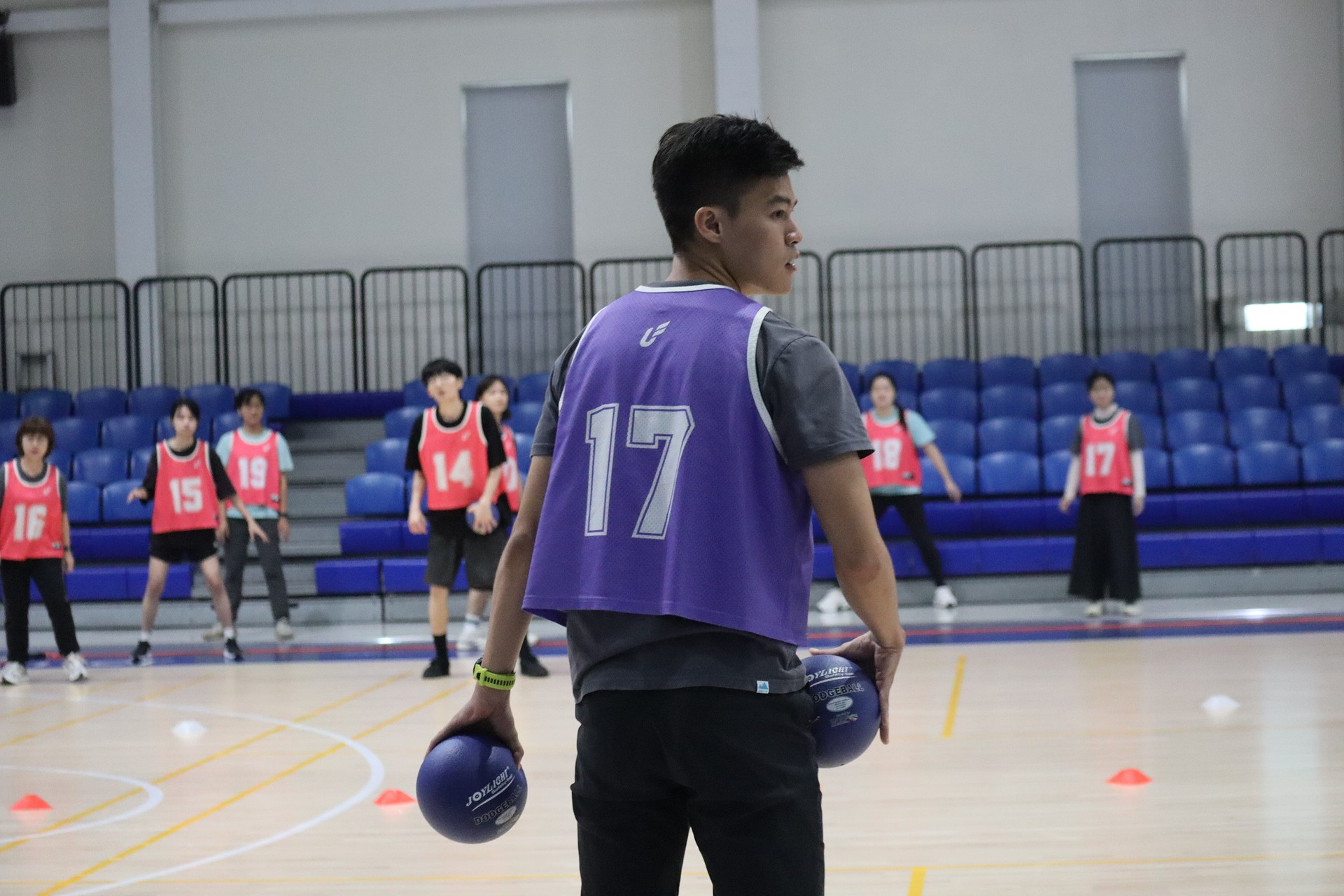 接著我們體驗了分隊競賽拋接球與刺激的中線搶球、搶蛋活動,學會和隊友一起考慮隊形、討論策略、觀察場上情勢,並在關鍵時刻支援隊伍做出最佳判斷,在上半場和自己隊伍的成員形成了更有默契的關係。