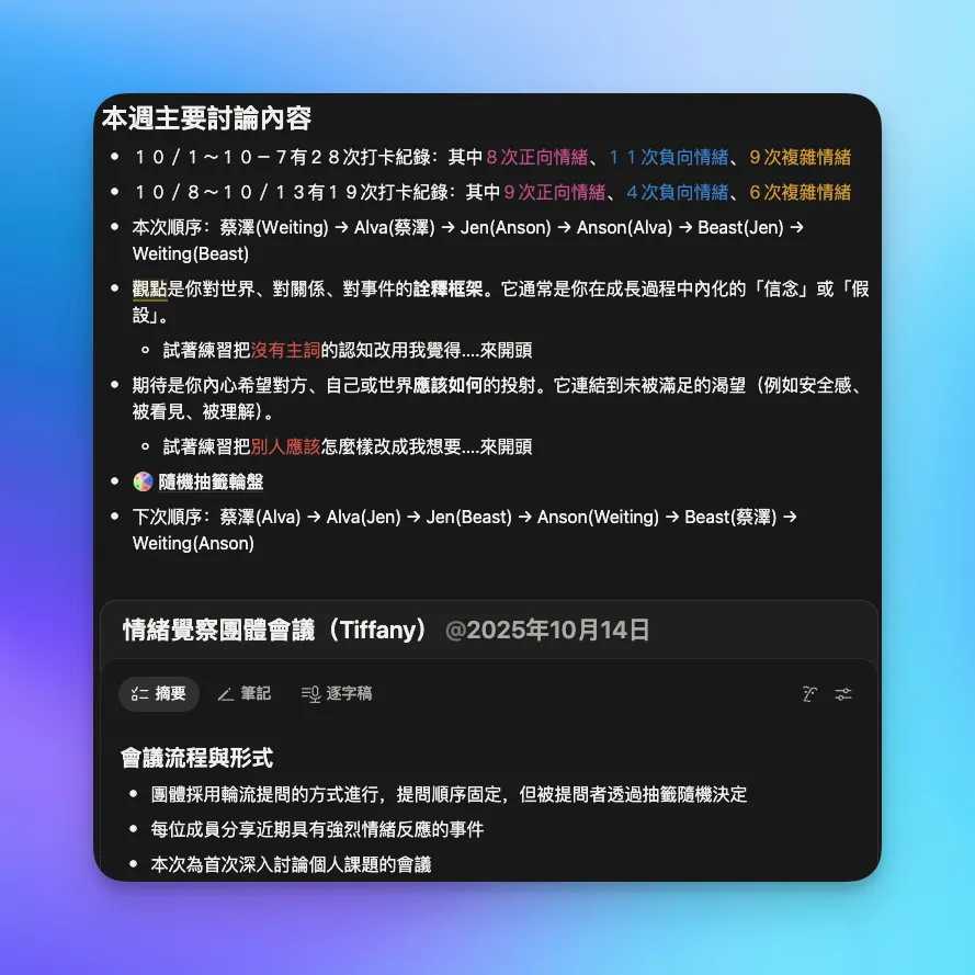 - 增加開場的解釋,貼說明跟範例到群組裡面,也在情緒日記裡面增加註解跟提醒