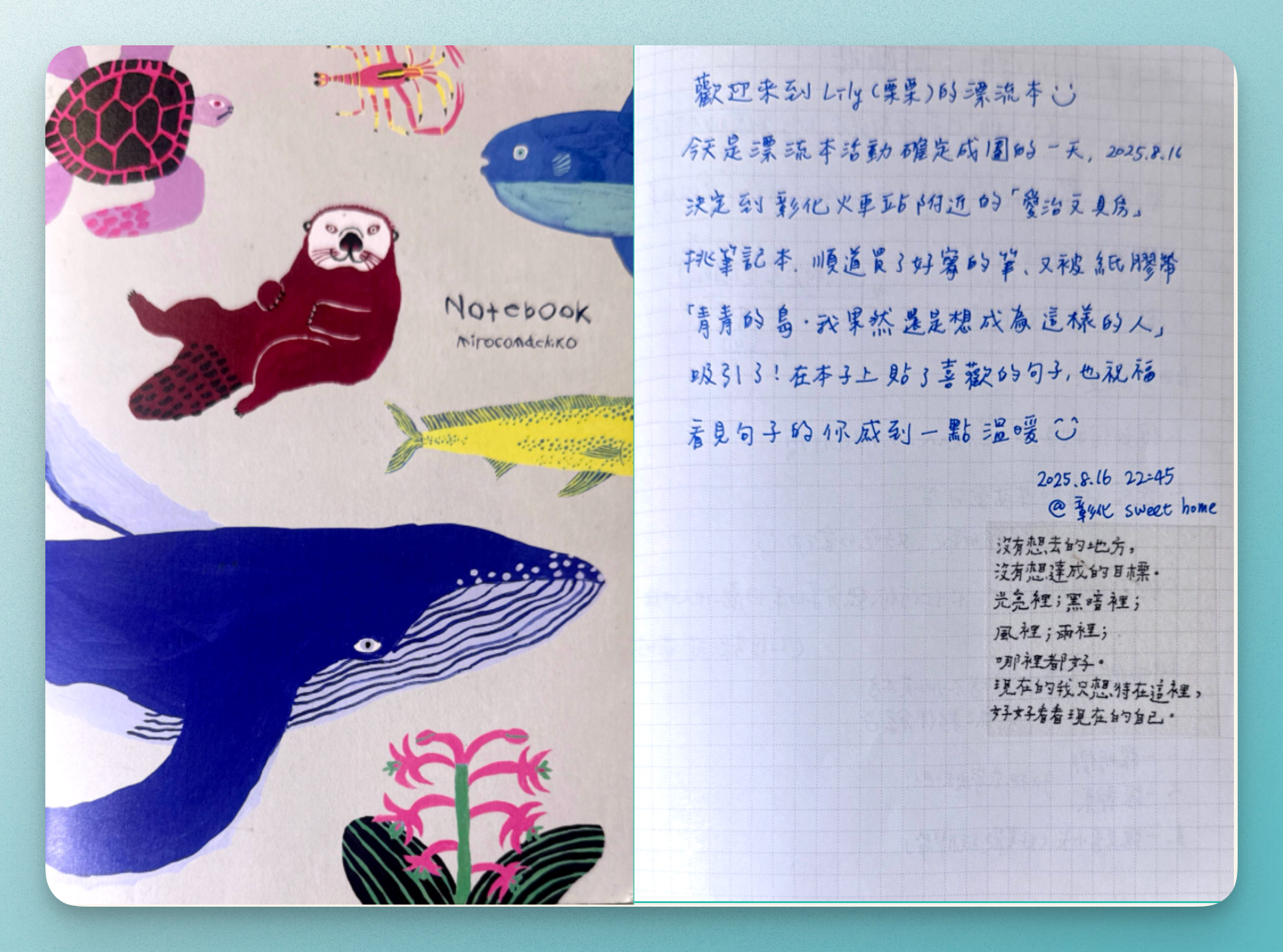 最近收到漂回家的黑客漂流本 (黑客島民6-7人一組,接力傳遞實體本本),剛好是在聖誕節前後,看著夥伴們用心感人的回覆,心裡很感動,真是最好的聖誕禮物了!感覺小小的善意回到自己身邊,還長大了!