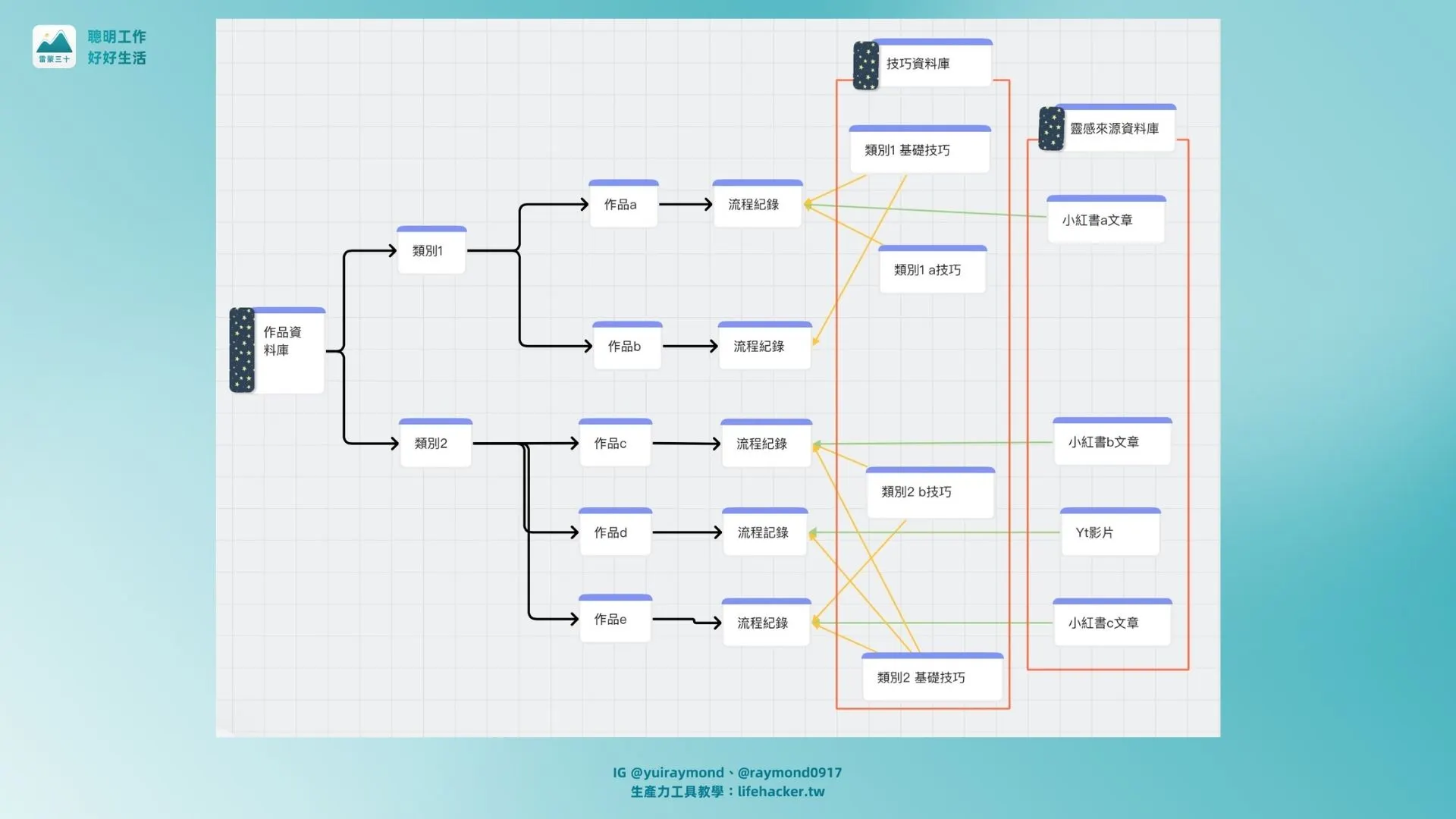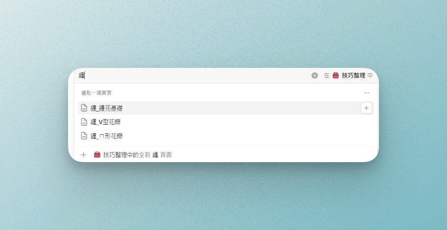 因為關聯只能打關鍵字,所以訂下規則,技巧前面帶有一個固定文字,就可以實現快速篩選。同樣的道理我也放在靈感資料庫內。