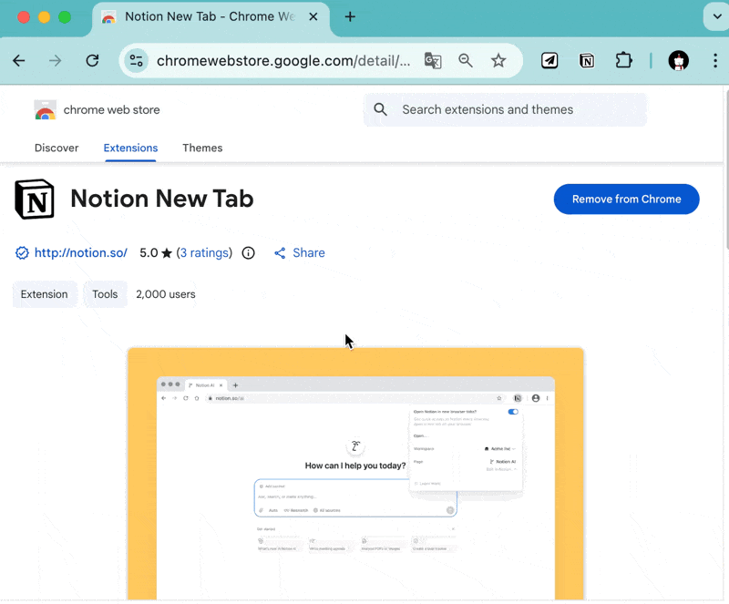Chrome 擴充功能:Notion 新分頁(Notion New Tab)